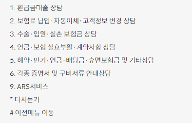 보험 ARS 메인 서비스 번호