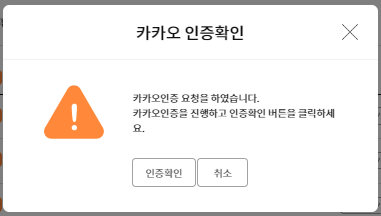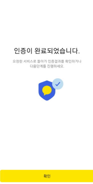 - '서명하기'를 클릭해주시면 인증이 완료되었습니다. 라는 창이 뜨고 '확인' 버튼을 클릭해주시면 카카오 로그인이 완료됩니다.