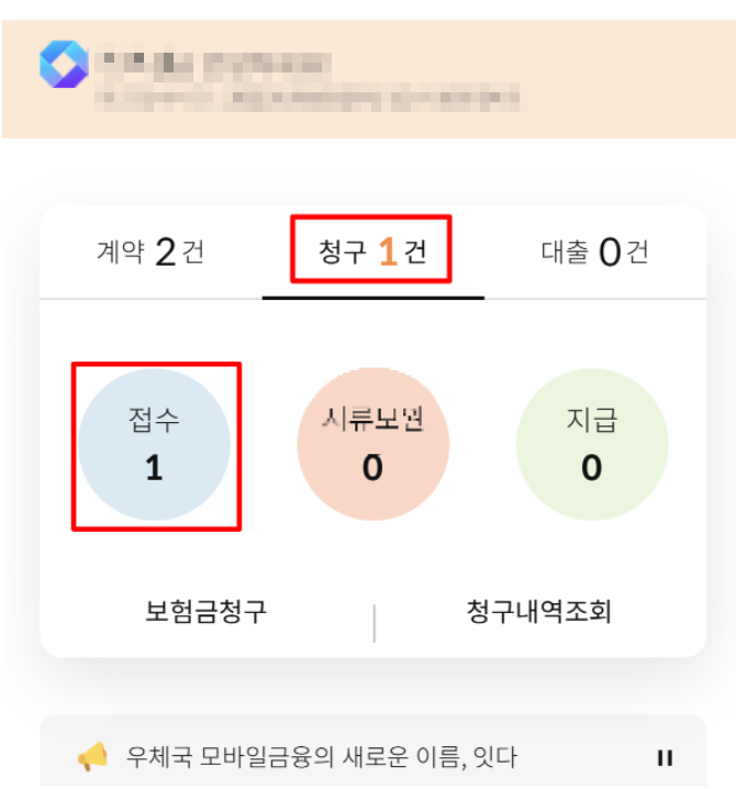 6. 우체국 보험 어플에서 계약 중인 보험 내역을 확인하신 후 '보험금 청구'를 클릭해주시면 됩니다.