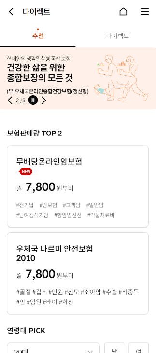 - 상품추천 및 보험료계산기능으로 생년월일/성별 입력만으로 보험료 계산