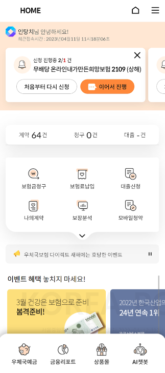 - 계약사항조회, 부활보험료, 피보험자담보별, 휴먼보험금 조회 등 다양한 조회서비스 제공