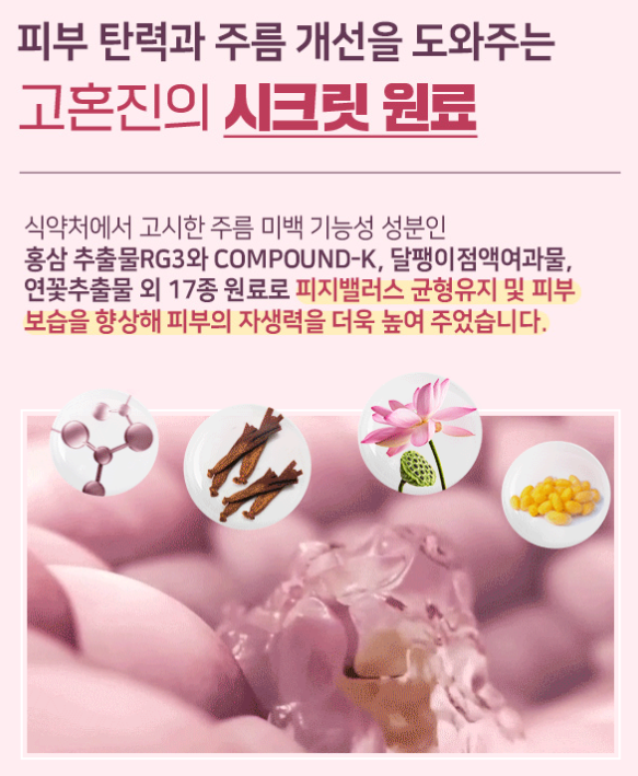 세월이 흘러가면서 생기를 잃어가는 피부를 바라보며, 주름, 기미, 미백 등 나이들어 가는 피부에 대한 걱정과 고민을 많은 여성분들이 하시고 계십니다. 이렇게 노화된 피부에 대한 고민을 많이 하실텐데요. 이런 고민을 한번에 해결해줄 수 있는 올인원 고호진 크림& 고혼진 에센스가 있습니다. 올인원 고혼 진 크림& 고혼 진 에센스은 뉴욕 타임스퀘어에서 홍보되어 미국, 유럽등 다양한 나라에서도 찾아서 사용하고 있는 고호 진은 고혼 진 효과 및 고혼 진 효능에 대해서 인정 받고 있습니다.