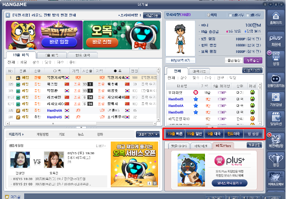 ▶ 게임설치가 완료되고 이제 한게임 바둑 대기실에 입장하시면 되십니다. 화면 중간에 원하는 게임을 생성하셔서 상대방과 매칭을 기다리시면 됩니다.