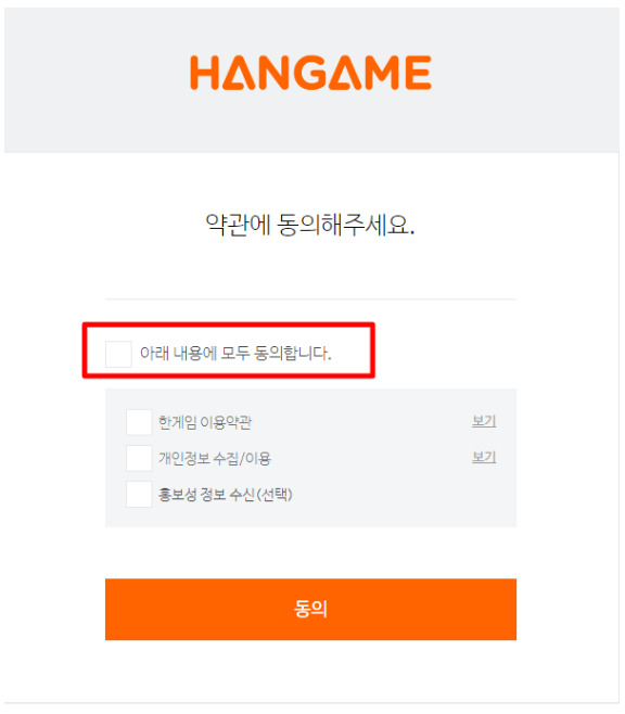 ▶ '확인' 버튼을 클릭해주시면 약과 동의에 대한 내용이 나오는데 모두 동의합니다.에 체크하시고 하단의 '동의' 버튼을 클릭해주시면 됩니다.