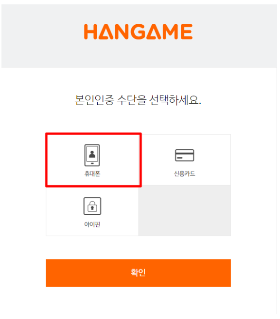 ▶ '동의' 버튼을 클릭하시면 본인인증 수단을 선택해달라는 화면이 나옵니다. 휴대폰으로 간단히 인증작업을 진행해주시면 됩니다.