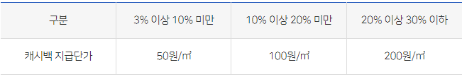 도시가스 캐시백 지급 기준