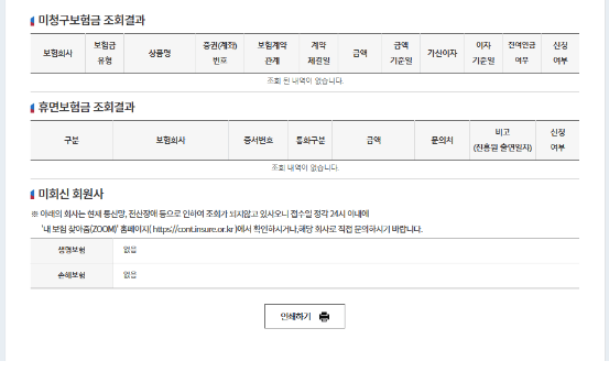 ▶ 미청구 보험금 조회결과 및 휴면보험금조회결과도 확인하실 수 있습니다.