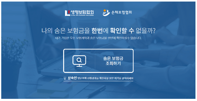 ▶ 홈페이지에 접속하신 후 '숨은 보험금 조회하기'를 클릭해주시면 됩니다.