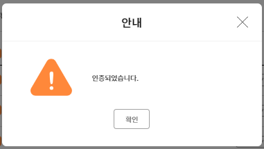 - '서명하기'를 클릭해주시면 인증이 완료되었습니다. 라는 창이 뜨고 '확인' 버튼을 클릭해주시면 카카오 로그인이 완료됩니다.