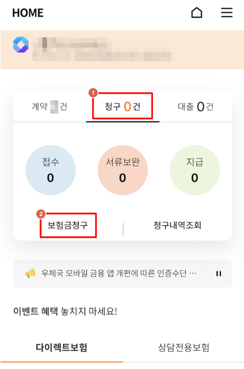 6. 우체국 보험 어플에서 계약 중인 보험 내역을 확인하신 후 '보험금 청구'를 클릭해주시면 됩니다.