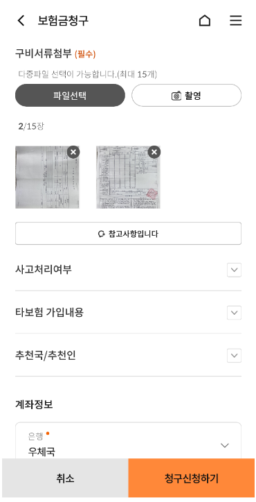 ※ 보험 청구 금액이 300만원 이상인 경우 직접 우체국에 방문하셔서 보험금