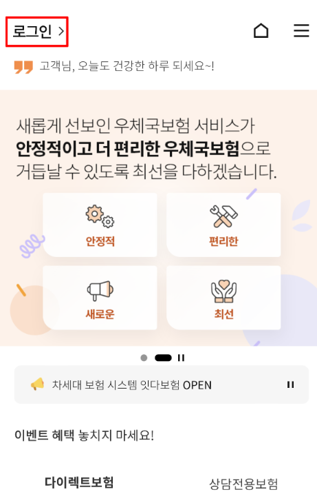 1. 핸드폰에 설치한 우체국 보험 어플 '잇다 보험'을 클릭해주시면 됩니다.