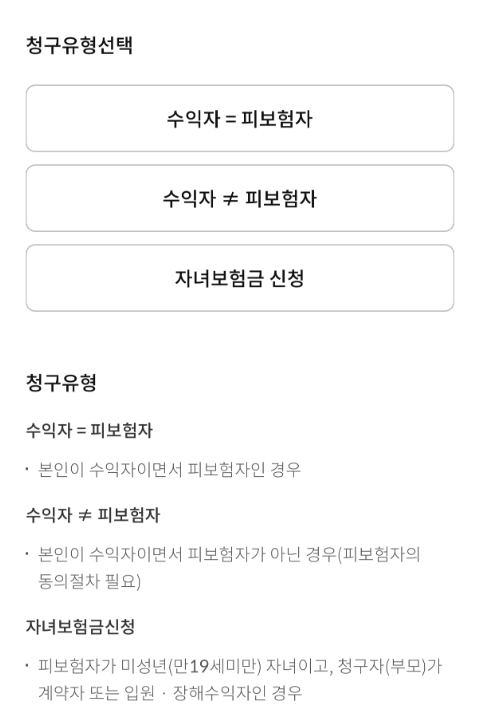 7. 본인이 청구할 보혐 유형에 맞는 것을 선택해서 클릭해주시면 됩니다.