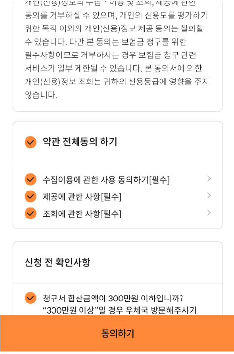8. 약관 내용을 확인하신 후 체크박스에 체크하셨으면, '동의하기' 버튼을 클릭해주시면 됩니다.