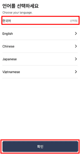 3. 다음으로 언어를 선택하라는 창이 뜹니다. '한국어'를 선택하시고 '확인' 버튼을 클릭해주시면 됩니다.