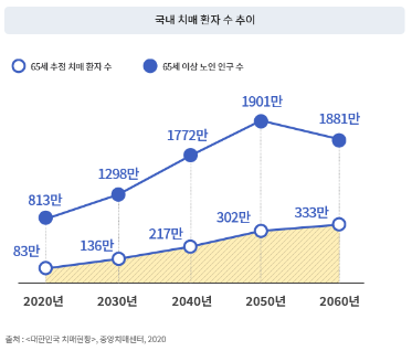 - 매년 증가하는 노인 치매 환자수