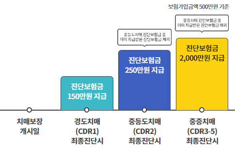 ※ 치매진단보험금의 지급사유 발생시 이미 지급한 진단보험금이 있는 경우, 이미 지급한 진단보험금 누계액을 차감하고 지급합니다.