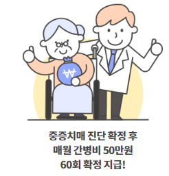 ▶ 경도치매부터 중증치매가지 체계적으로 보장하고 중증치매 진단 시에는 매월 간병비까지 지급