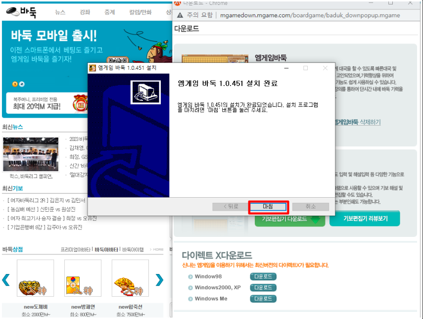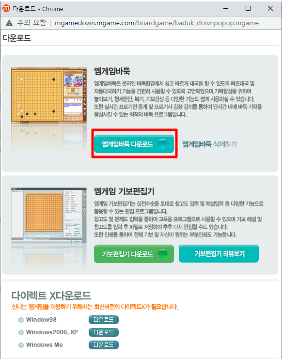 ▶ '다운로드' 버튼을 클릭하시면 팝업창이 뜨시는데 '엠게임 바둑 다운로드' 버튼을 클릭재후시면 됩니다.