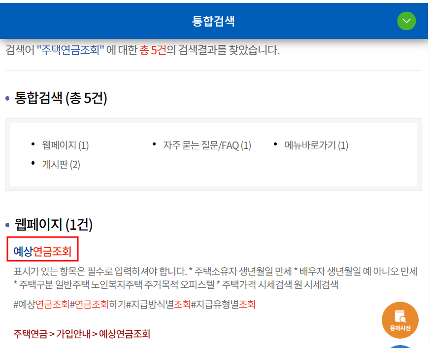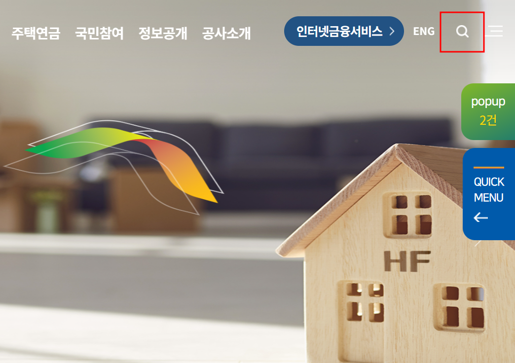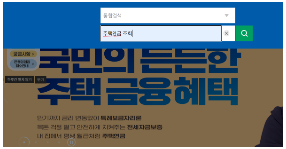 ▶ 검색창에 주택연금 조회를 입력하시고 검색을 하시면 됩니다.