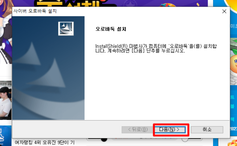 ▶ '다운로드' 버튼을 클릭하시면 오로바둑 설치창이 뜨게되며 '다음'버튼을 클릭하시면 됩니다.