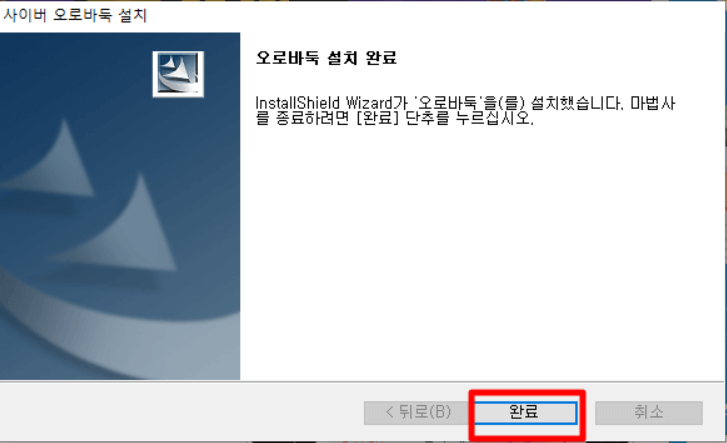 ▶ 설치가 완료되면 '완료'버튼을 클릭해주시면 설치가 완료됩니다.