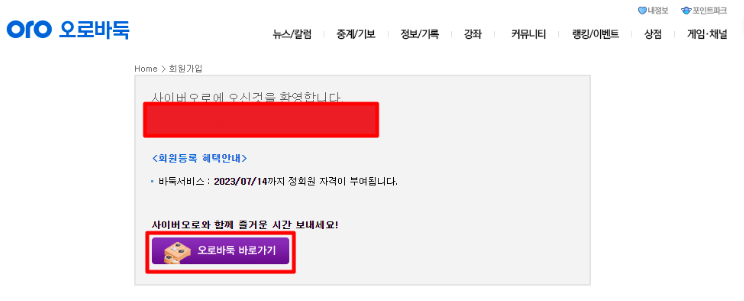 사이버 오로바둑 회원가입