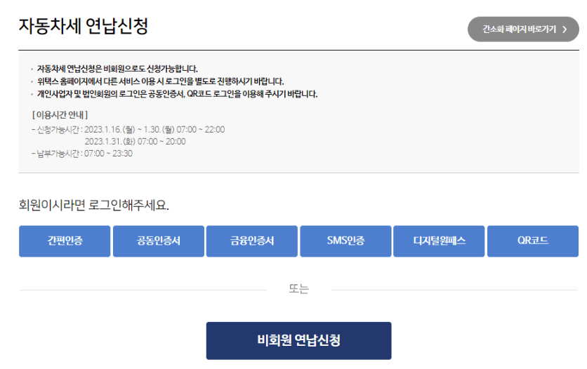 2. 로그인 혹은 비회원 연납신청을 누릅니다.