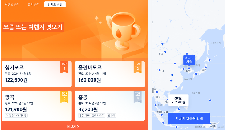 트립닷컴(Trip.com) 은 사용자 친화적인 인터페이스와 다양한 여행 상품을 제공하는 것으로 유명합니다. 여행자들은 이 플랫폼에서 전 세계 수백만 개의 항공편과 호텔, 렌터카 서비스를 검색하고 비교하여 자신에게 가장 적합한 상품을 선택할 수 있습니다. 또한, 실시간으로 업데이트되는 가격 정보와 다양한 여행 상품 패키지로 최적의 예약 경험을 제공합니다.